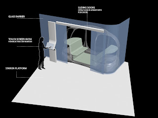 - After years of planning and construction, an extensive urban personal rapid transit (PRT) network of driverless pods was completed. The pods were aimed at carrying passengers accross the car free districts to specific destinations.